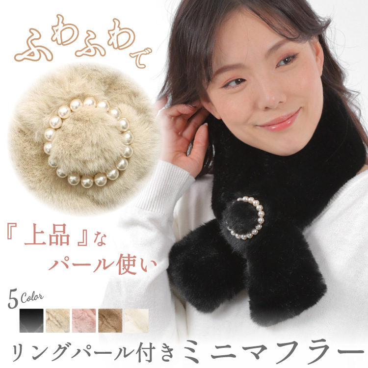 マフラー レディース ミニマフラー リング パール フェイクファー ティペット かわいい ふわふわ フォーマル あたたかい