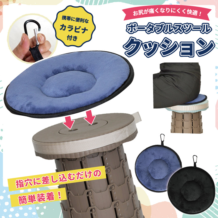 スツールクッション 伸縮スツール専用 座布団 ざぶとん 専用 カラビナ付 人気 持ち運び ポータブルスツール クッション 伸縮椅子 簡単装着 合わせ買い 快適 楽 お尻の痛み軽減 ブルー ブラック アウトドア おでかけ イベント 外出 1000円ポッキリ 買いまわり