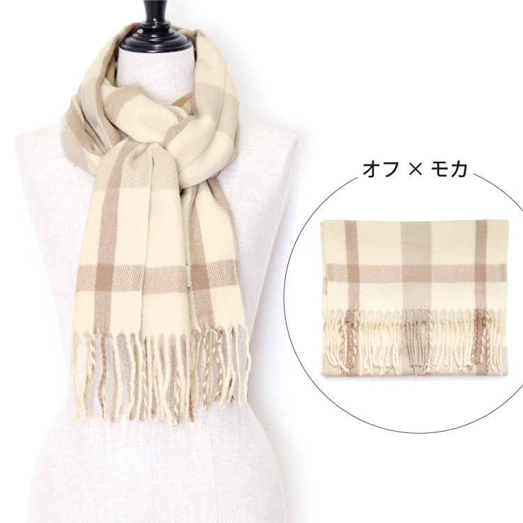 チェック柄マフラー ワンポイント おしゃれ かわいい ふわふわ あたたか 人気 チェック柄 オフ 白 モカ ブラウン ピンク キャメル グレー ネイビー ブルー