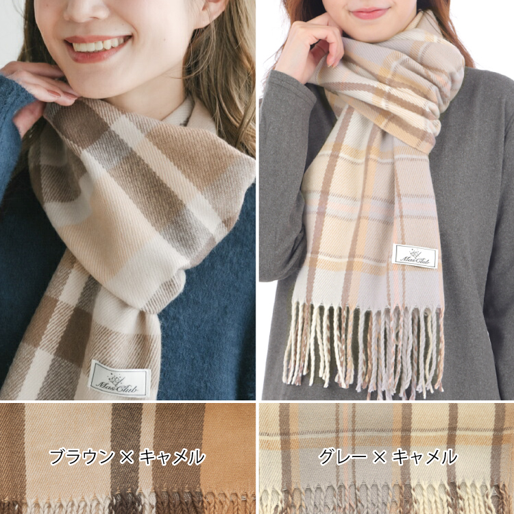 マフラー チェック レディース 柄 人気 プレゼント カシミヤタッチ ウールタッチ 厚手 柄 クリスマス