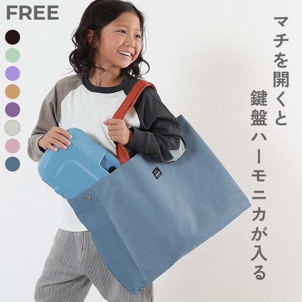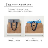 | サイドのボタンを外すと、鍵盤ハーモニカや学校で作った作品も入るサイズへ拡張できるレッスンバッグ。 付属の肩紐を調整すれば、ショルダーとトート2WAYで使用できるのもポイント。 引っかけループ付きなので、机の横にかけても、バッグの底が床につかず、汚れにくくなっています。 |