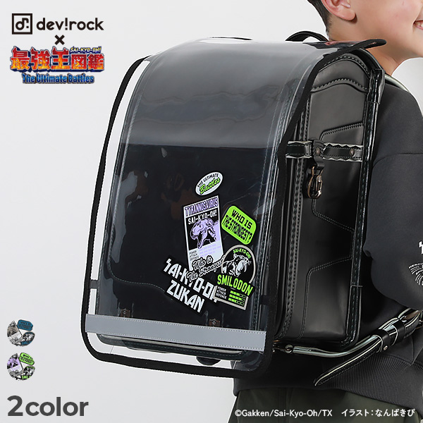 | 「最強王図鑑」の世界を学校でも『最強王図鑑コラボ 透明ランドセルカバー(リフレクター付き)』 ティラノサウルスとスミロドンをワッペン風にデザイン。 ランドセルの色を見せながら、「最強王図鑑」が楽しめるアイテムです。 暗い道で役に立つリフレクター付きなのも嬉しいポイント。 自動車や車のライトを反射します。 ※縦型の全かぶせタイプのランドセルに対応しています。 |