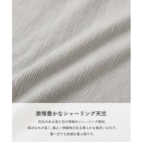 | ■素材 表情豊かなシャーリング天竺 凹凸のある見た目が特徴の素材。 肌ばなれが良く、程よい伸縮性のある柔らかな風合いなので、暑い日でも快適な着心地です。 伸縮性:あり |
