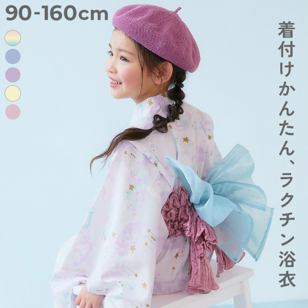 | モチーフや色遣いにこだわり、ファンシーな雰囲気を演出。 サテンとオーガンジーの2重帯でさらに華やかさをUPさせました。 すぽっとかぶぜて、ゴム帯を付ければ完成。 子ども1人でも着られるくらいの"着付けやすさ"にこだわりました。 動き回っても着崩れにくいのもポイント。 成長に合わせて肩と裾の糸を外し、調節できるので長く着用していただけます。 |