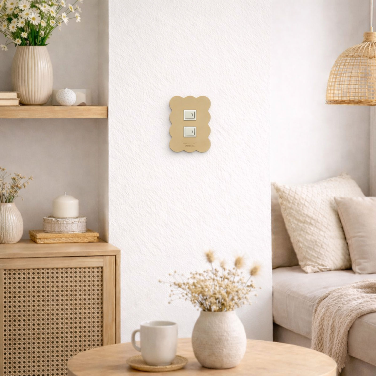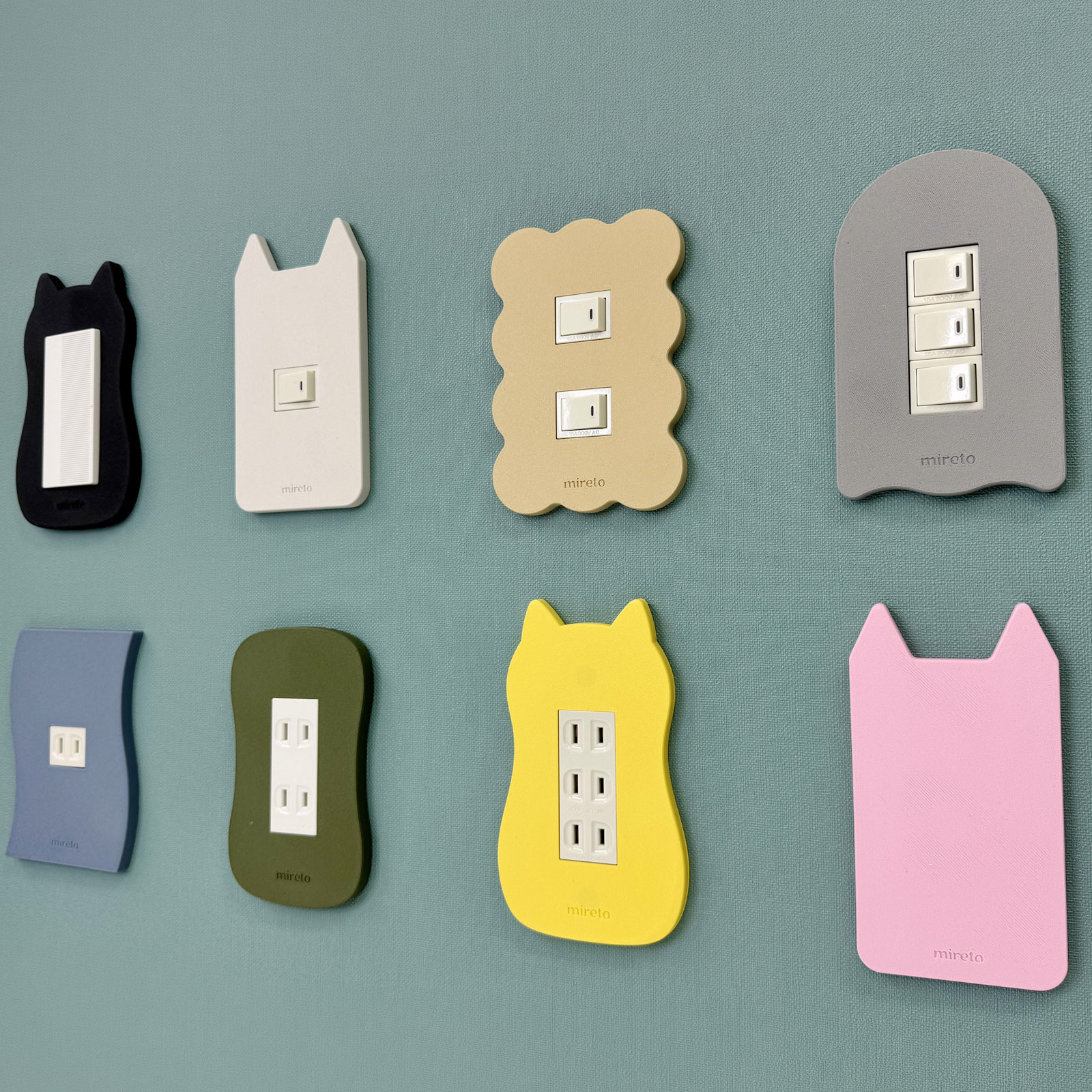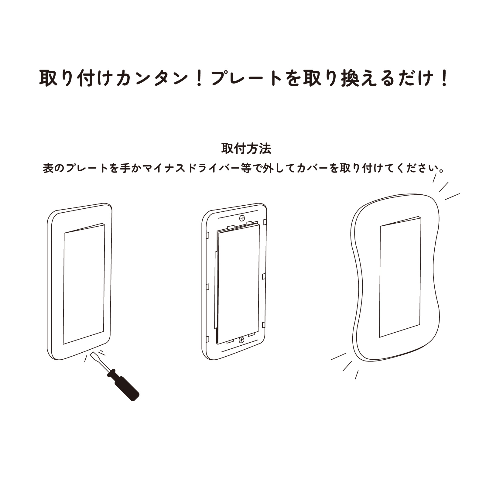 | 特徴 | 部屋の雰囲気をさりげなく彩る、スイッチ・コンセント用の着せ替えカバーです。 シンプルな壁面にアクセントを加え、毎日の暮らしをちょっとおしゃれで楽しい空間に変えてくれます。 工具は一切不要。マグネット式で簡単に取り付けでき、元から付いている表面プレートと交換するだけなので、どなたでも手軽に設置できます。取り外しも簡単なため、賃貸住宅でも安心してご使用いただけます。 素材には、食品トレイや医療用品などにも幅広く使用されている、植物由来の「生分解性バイオマスプラスチック」を採用。環境にも配慮したやさしい素材です。 スイッチやコンセントまわりを手軽におしゃれに演出できるデザインカバー。 デザインは6種類、カラーは8色をご用意しており、お部屋の雰囲気やインテリアに合わせて自由にコーディネートをお楽しみいただけます。 ・工具不要!マグネットで取付カンタン ・元からついている表面のプレートを取り換えるだけ賃貸でも ・手軽に取付取り外し出来て賃貸でも問題無し ・食品トレイ、医療用品などに幅広く利用されている植物由来の「生分解性バイオマスプラスチック」で環境にも優しい。 ・手軽にスイッチやコンセント周りをおしゃれに ・デザイン6種類×カラー8色 |