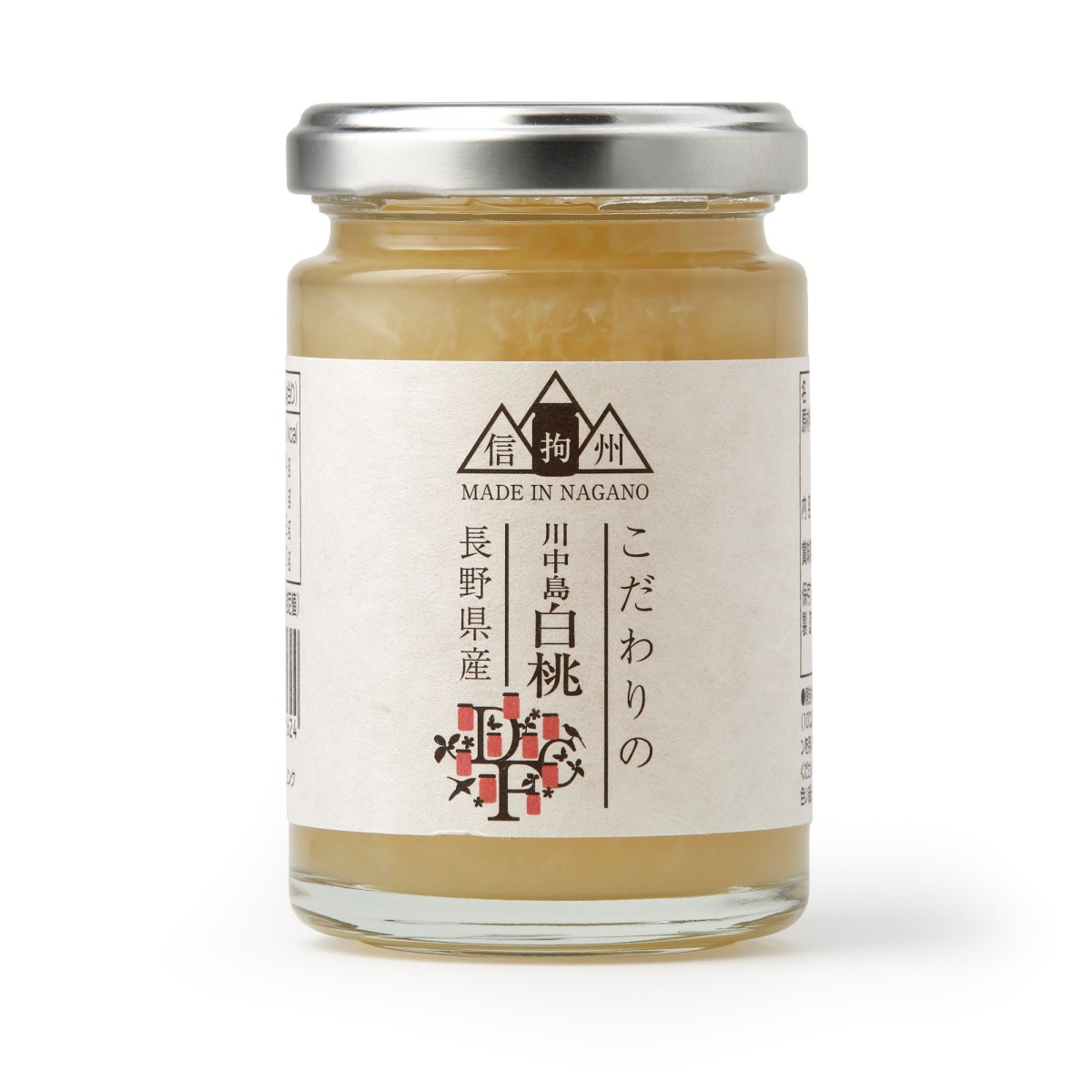 ●原材料名:白桃(長野県)、砂糖、洋酒、レモン濃縮果汁/増粘多糖類、香料、酸化防止剤(V.C)