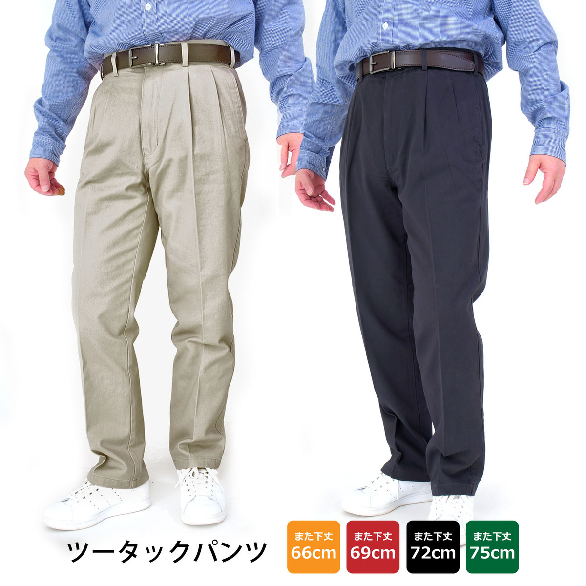 チノパン カジュアルパンツ ツータック メンズ シニア 綿100% 裾上げ加工済 ソフトな履き心地 小さいサイズ 大きいサイズ 豊富な股下サイズ