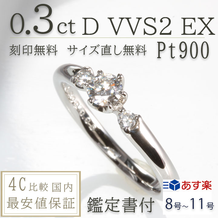 あすつく 婚約指輪 0.3ct D-VVS2-EX サイドダイヤ 高品質 天然ダイヤモンド 鑑定書付 プロポーズ用 エンゲージリング 普段使い シンプル