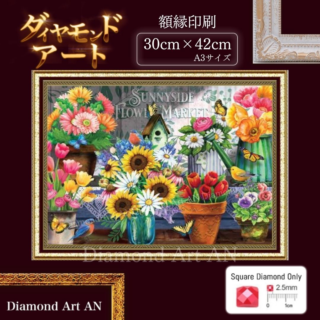 AM-131 ダイヤモンドアート キット 花 ガーデニング スクエアビーズ 額縁印刷 A3 リハビリ脳トレ 集中力 知育 ビーズアート