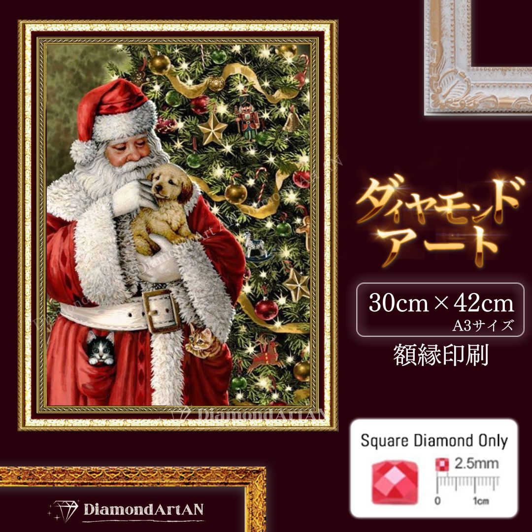 AM-228 ダイヤモンドアート キット クリスマス 雪だるま サンタ 額縁印刷 A3 四角 初心者ビーズ