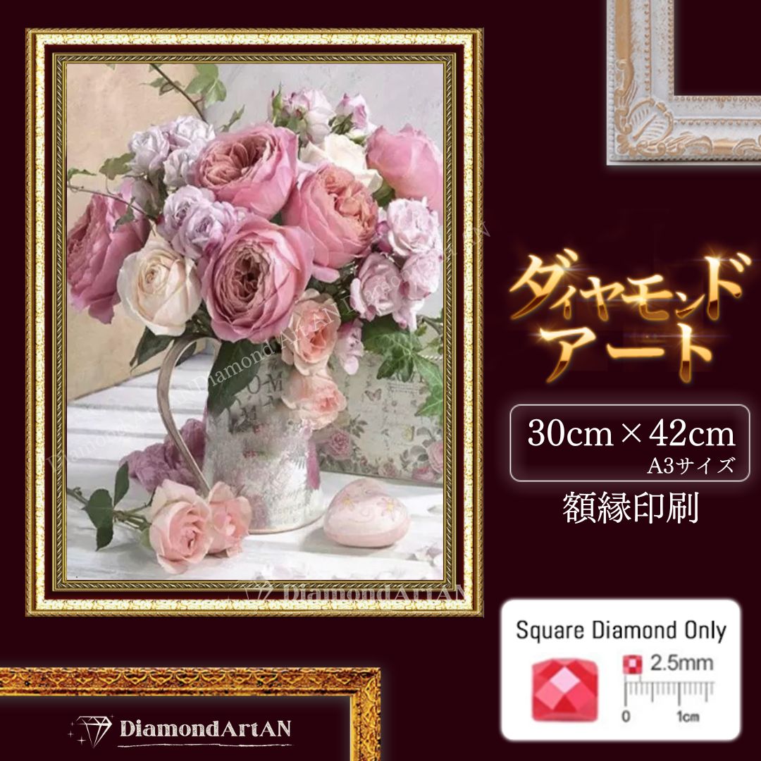 AM-240 ダイヤモンドアート キット 花 冬 モノクロ 額縁印刷 A3 リハビリ脳トレ 集中力 知育 ビーズアート
