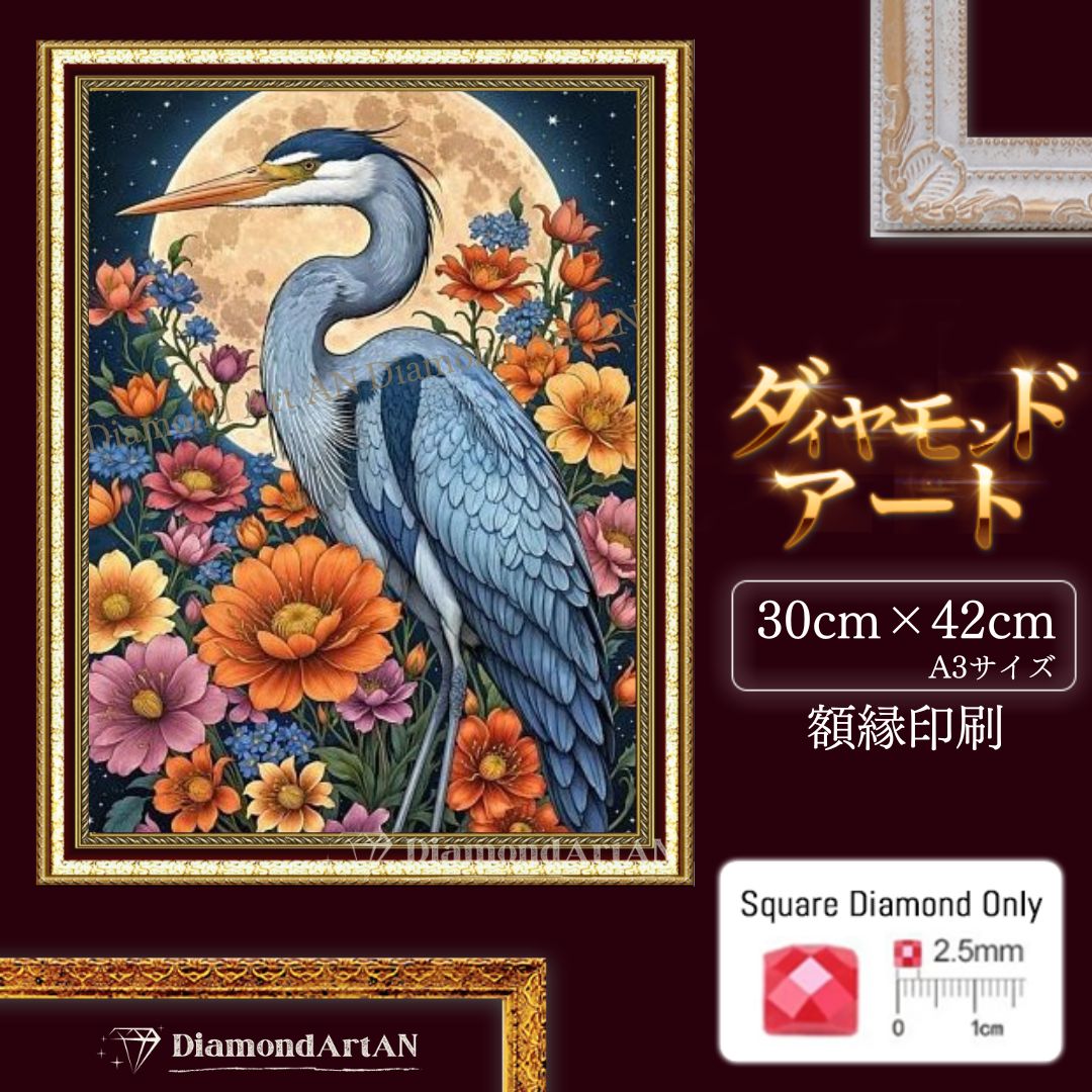 AM-513 ダイヤモンドアート 鳥 月 花 額縁印刷 A3 リハビリ脳トレ 集中力 知育 ビーズアート