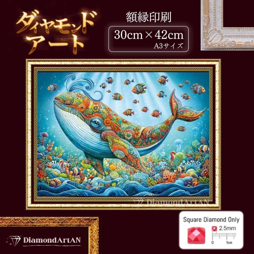 AM-522 ダイヤモンドアート クジラ 額縁印刷 A3 リハビリ脳トレ 集中力 知育 ビーズアート