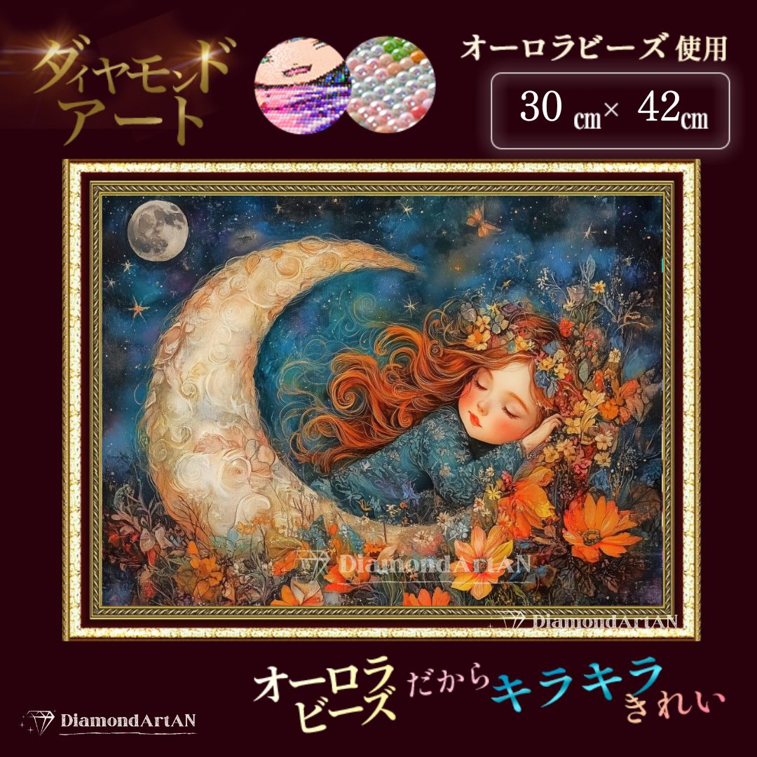 【オーロラビーズ使用】AMAB-35 ダイヤモンドアート キット 少女 月 額縁印刷 A3 四角 手芸 画材 初心者ビーズ