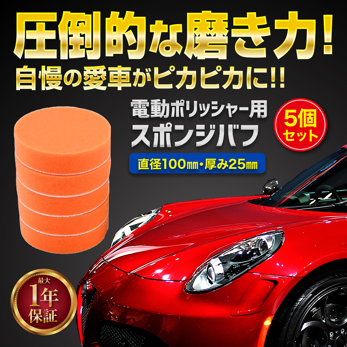ポリッシャー バフ 100mm 車 5枚セット 電動 スポンジ パフ マジックテープ 洗車用品 キズ消し 車磨き パッド ワックス
