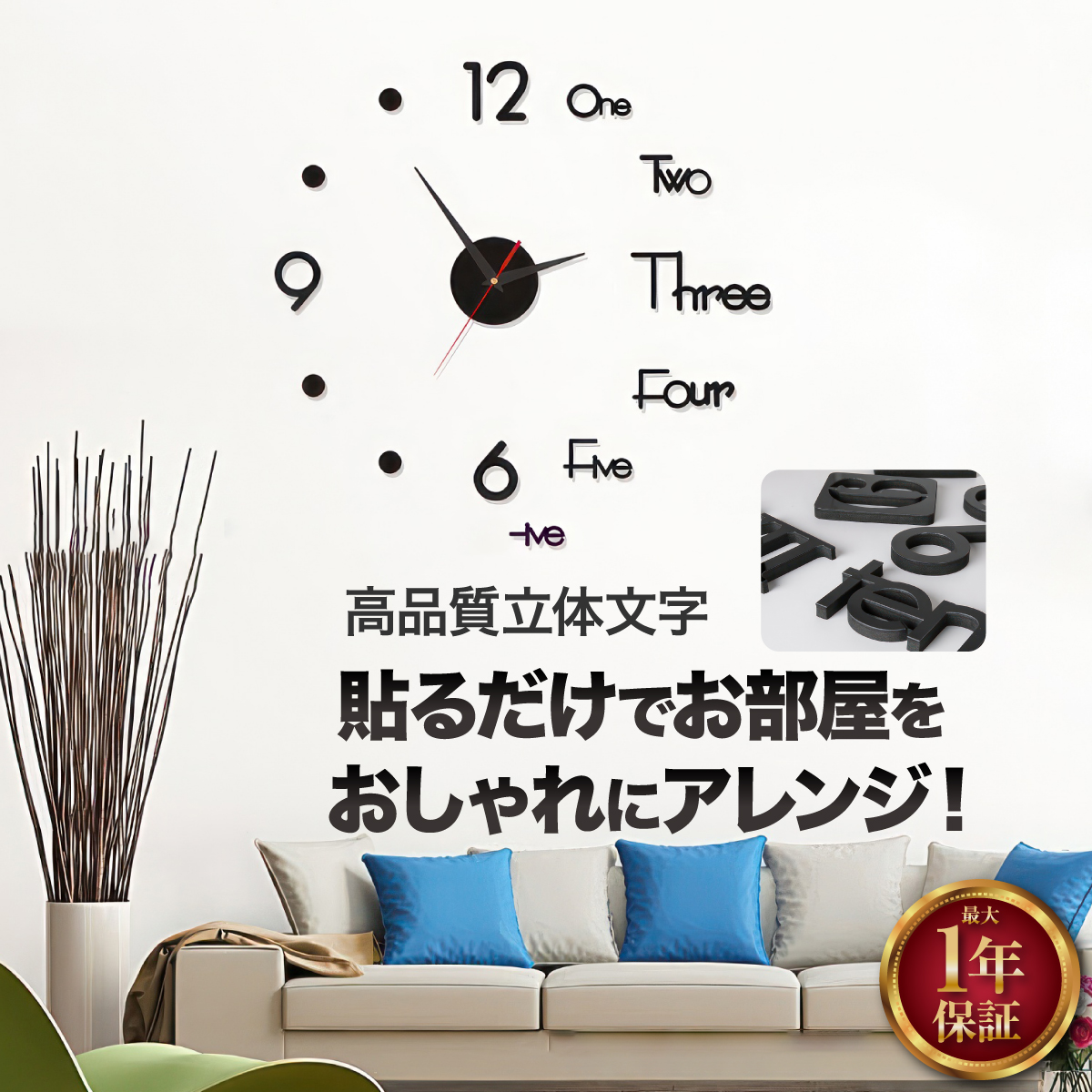 【商品内容】お部屋をおしゃれに大変身させるウォールクロックです。従来の掛け時計にはない、おしゃれな雰囲気を作ります。静音タイプでカチカチの音がしないため、ほとんど音が聞こえない静音タイプです。オフィス、寝室など静かな空間におススメです。使い方1.文字盤の部品を型から取り外します。2.指で軽く押すと外れます3.裏面の両面テープをはがします。4.自由な組み合わせで自分だけの文字盤をつくることが出来ます。お手軽な金額なので引越し祝いや新居祝いに最適です。※電池は別売りになります。※取り付ける際に油分、水分などを十分に取り除いてから取り付けてください。※凸凹な壁、ざらざらした壁、コンクリートの壁などは貼り付けづらい可能性がございますので注意してください。