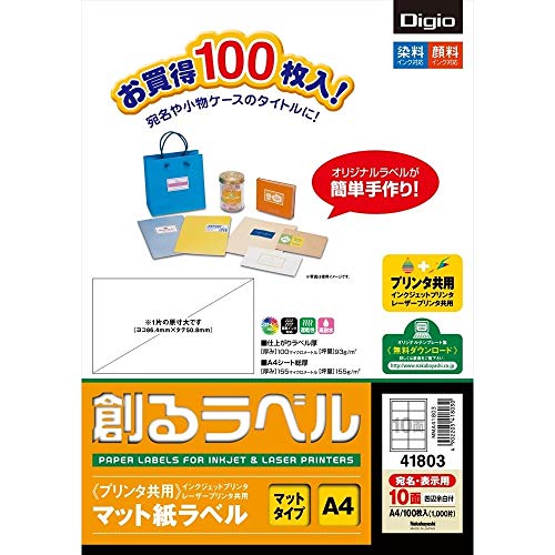 Digio 創るラベル プリンタ共用 マット紙ラベル A4・10面(四辺余白付) 100枚 MMA41803 [オフィス用品]