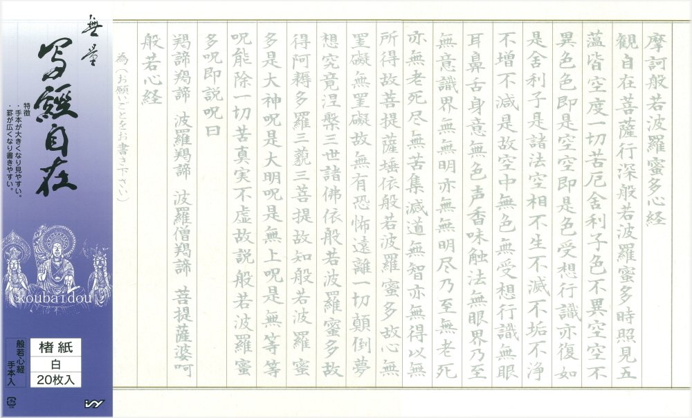 弘梅堂 写経用紙 写経自在 般若心経 楮紙白 幅広 20枚 (行幅21mm)