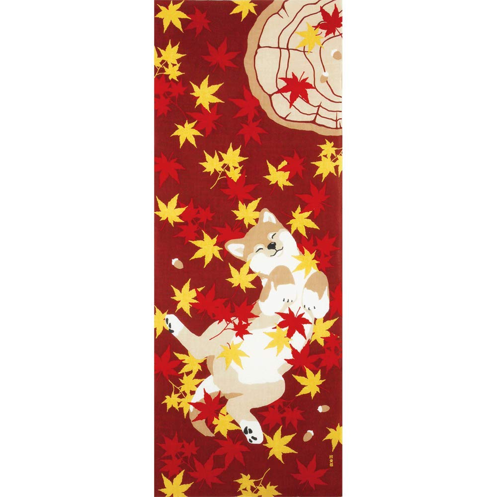 濱文様 絵てぬぐい もみじと柴犬