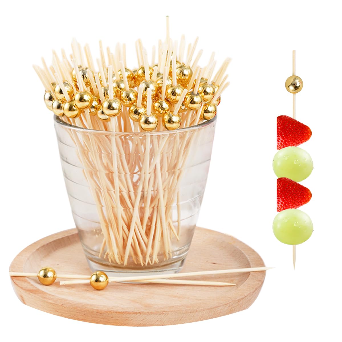 カクテルピック 約190本入り おしゃれ 竹 爪楊枝 カクテルピン フルーツピック 使い捨て ゴールドビーズ 果物 オードブルピン ピンチョス ピック