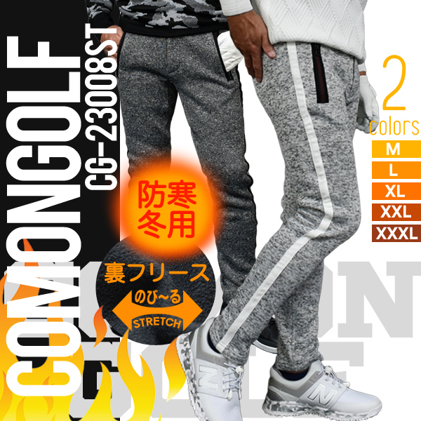 ゴルフウエア メンズ 春ゴルフパンツ 防寒 ゴルフパンツ ズボン 裏起毛 スライバーニット サイドライン おしゃれ サンタリート コモンゴルフ CG-23008ST