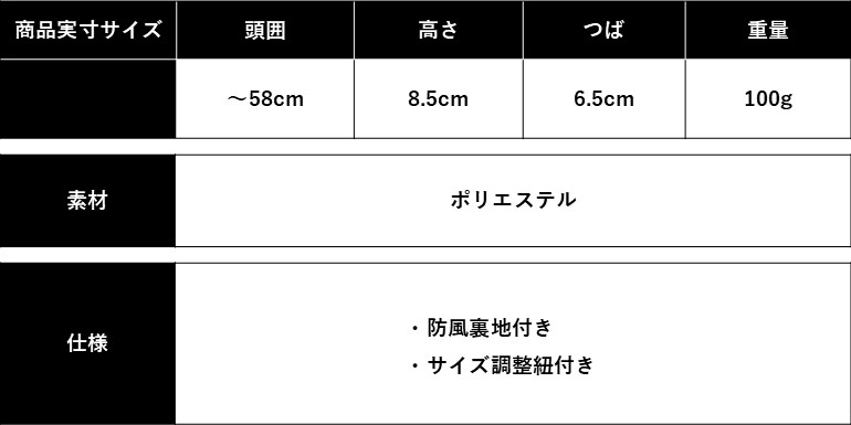 頭囲:〜58cm