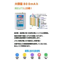 | 電池タイプ | 充電式 ニッケル水素電池 (NI-MH) ※ニッケルはニカド電池の約2倍のエネルギー充電ができ、 放電電圧はニカドとほぼ同等で互換性があります。 |