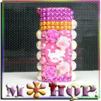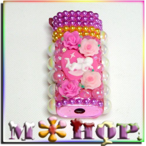 バラとエンジェルライターケース手作りデコ by M*HOP 全面デコで、ちょっとこぶりの薔薇を加え、半円パールストーンで 飾り付け、エンジェルがステキ 樹脂バラ・半円パールストーン・ハート型・エンジェルストーン・等使用しています。
