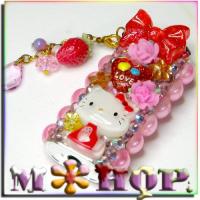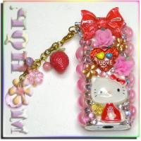 ねこちゃん まっ赤なりぼん ライターケース 苺チャーム付き 樹脂バラ・ラメ入りリボン・ねこちゃんパーツ等使用しています