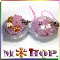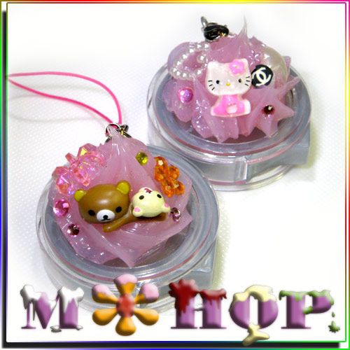 クマorネコちゃん スライドケース ストラップ付 手作りデコ サイズ :: 23mm×35φ(本体 :: 高さ10mm)