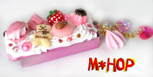 デコ雑貨 手作りスイーツ盛り フリスクケース マカロンAチャーム付 ・手作りマカロン/プリン/いちご/手作りチョコレート/パール/アクリル/くまたんクッキー/ビーズ/アーモンド付クッキー/シリコン等で仕上げてあります。 チャームには、手作りホイップWハート