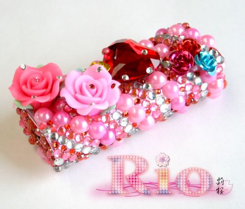ゴージャス ライターケース デコ雑貨 by Rio アクリルラインストーン・アルミバラ・パール・樹脂バラ・ハートストーン等で仕上げてあります。 70mm×25mm×20mm