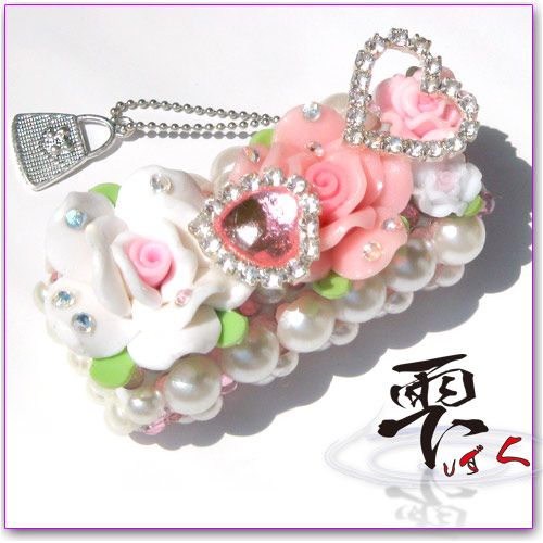姫系 スワロ使用のリッチ盛りデコライターケース チャーム付 デコ製品 by-雫 ■ 裏面はストーンとパールでデザインしてあります。 使用パーツ :: スワロSS12、樹脂バラ、メタルハート、高品質ストーン、パール等々 ※使い捨てライターケースとなっております。