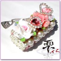 姫系 スワロ使用のリッチ盛りデコライターケース チャーム付 デコ製品 by-雫