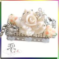 スワロSS12 大人持ちリッチ フリスクケース by-雫 ☆スワロSS12、座金付きハートストーン、樹脂バラ、カメリアパピヨン、パールハート等で作成 送料無料!!