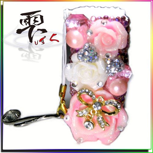 姫系 スワロ使用 ライトピンクの姫様用 ライターケース 全デコ by-雫 ☆スワロSS12/リボンパーツ/ハートパーツ/プラバラ/ワンポイントレクタン/高品質ストーン等で作成 メール便での配送は出来ません。