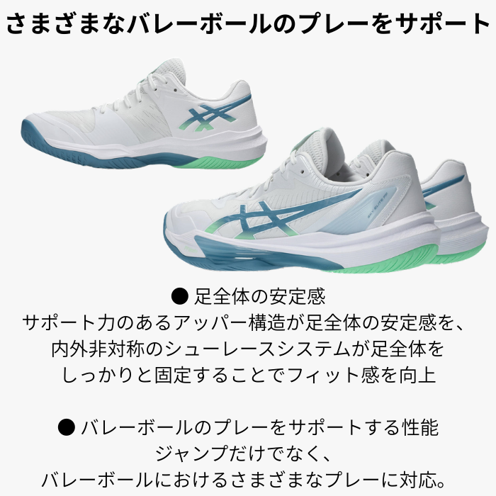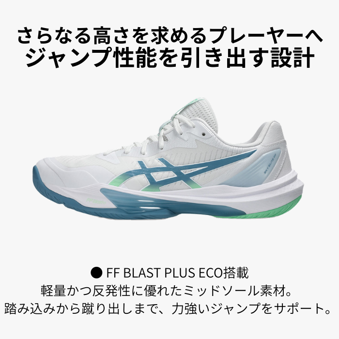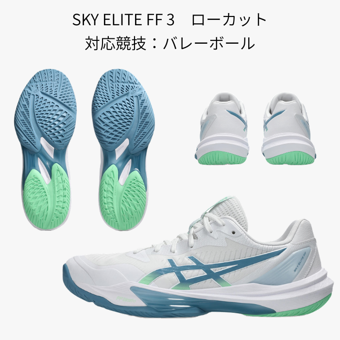 asics SKY ELITE FF 3(1051A080)メンズ バレーボールシューズ ローカット 靴紐1本プレゼント アシックス バレー 反発 クッション STANDARD White/SabaBlue