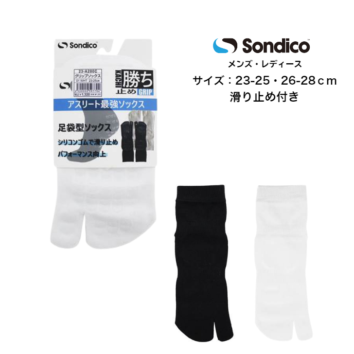 【メール便だと送料無料】グリップソックス 足袋型 ソンディコ Sondico メンズ レディース 23A280C 足底からかかとのシリコンゴムがグリップ効果を発揮