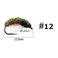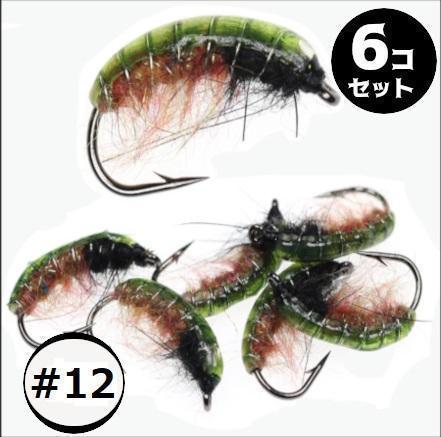 ニンフ フライ 6個セット #12 グリーン 毛虫風 スカッド ルアー エリアトラウト 爆釣 渓流 毛バリ 管釣り ニンフフライ カディスピューバ