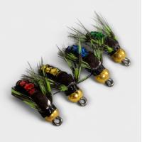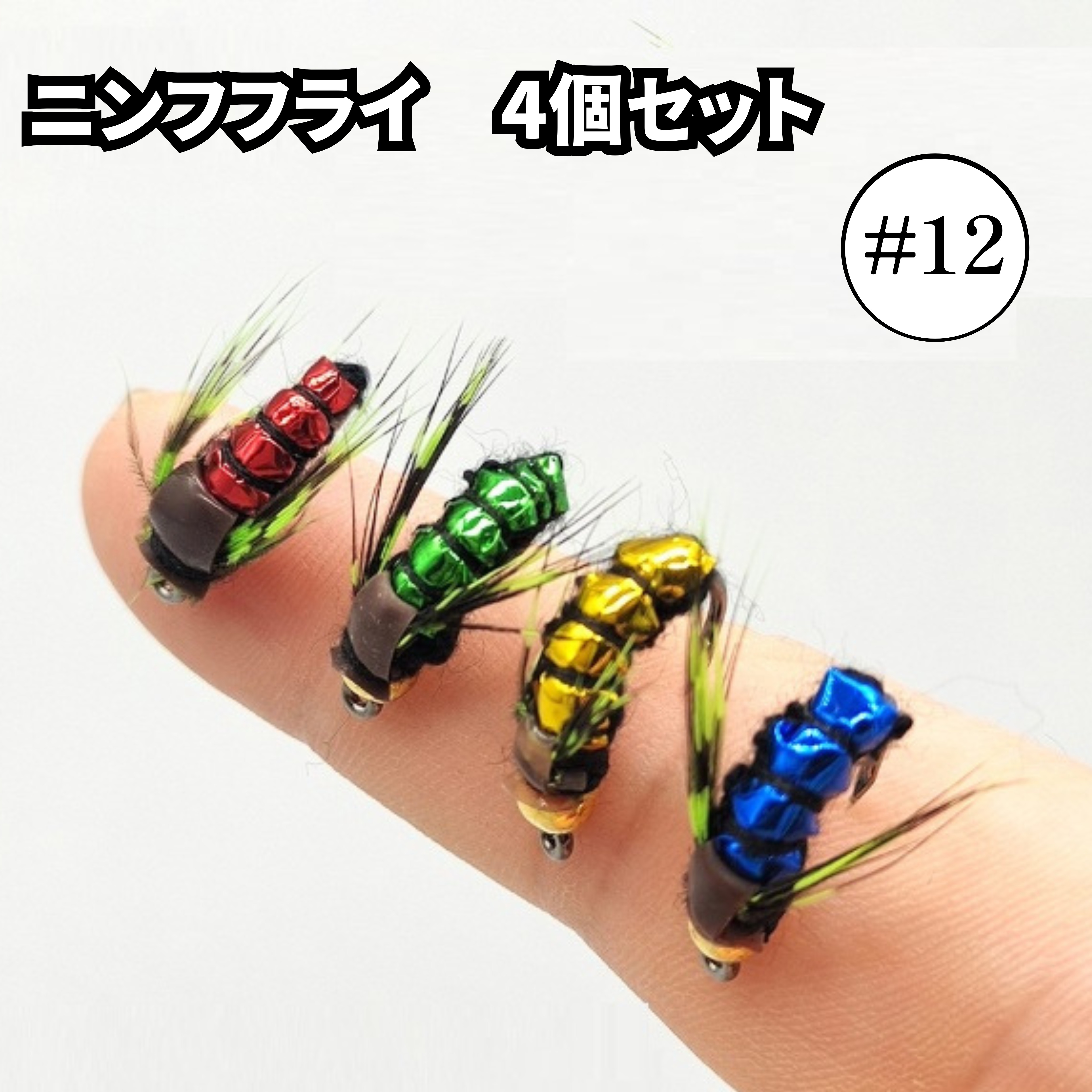 ニンフ フライ 4個 ニンフフライ #12 幼虫 昆虫 スカッド ルアー エリアトラウト 爆釣 渓流 毛バリ 管釣り 赤 青 緑 黄色
