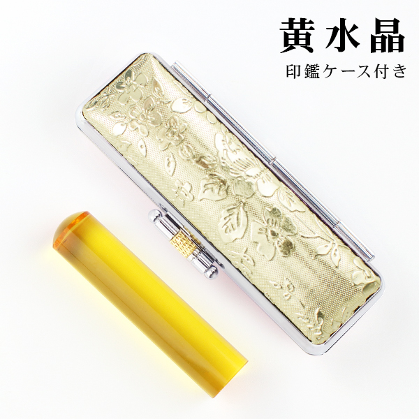 11月誕生石 開運印鑑 黄水晶印鑑 シトリン はんこ 12.0mm/13.5mm/15.0mm 実印 男性 女性 銀行印 認印 パワーストーン 水晶印鑑 印鑑ケース付き