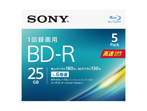 ビデオ用BD-R 25GB SONY 5BNR1VJPS6 6倍速 5枚パック インクジェット対応