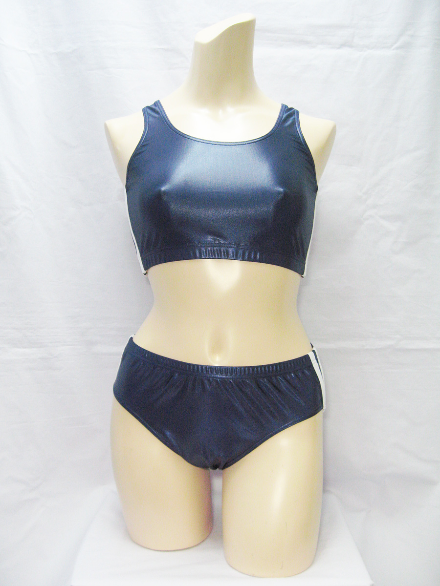 スーパーウェット生地ハーフトップ&ブルマSET◆紺×白/M・3L