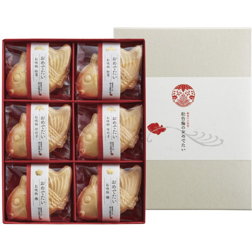 めでたさを表す松竹梅になぞらえた、松茸、竹の子、梅の三種を具材とした縁起づくしのお吸物です。可愛らしい鯛型の最中に包み、お慶びの心をお伝えします。