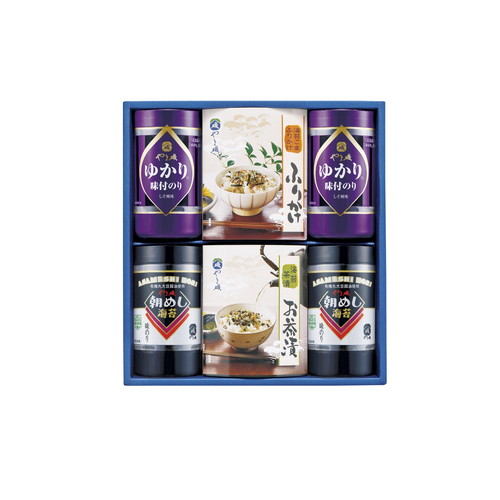 ■味付のり(8切26枚)×2、ゆかり味付のり(8切26枚)×2、のり茶漬(5.5g×4袋)、のりふりかけ(5g×4袋) 【卵・乳成分・小麦・えび】