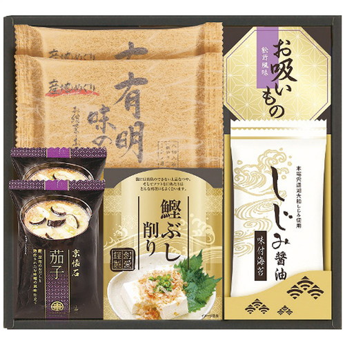 ■マルコメ京懐石茄子のおみそ汁11.5g・白子有明味のり(8切8枚)・しじみ醤油味付海苔(8切8枚)各2袋・永谷園お吸いもの(2.3g×2袋)・鰹節削り(2g×3袋)各1個