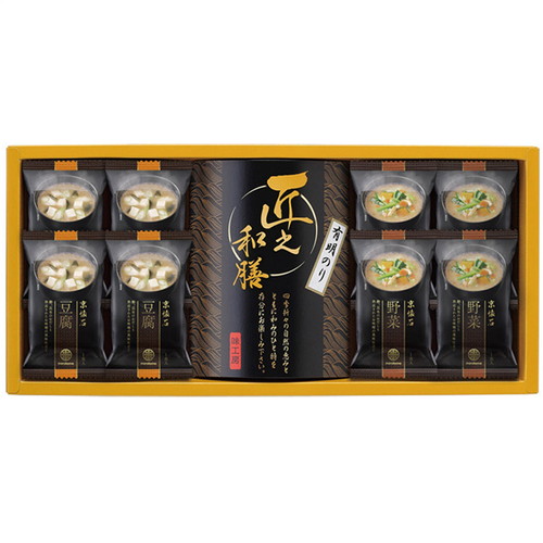 鰹、昆布のおだしと熟成されたお味噌の風味仕立てのフリーズドライと有明のり・佃煮の詰合せです。
