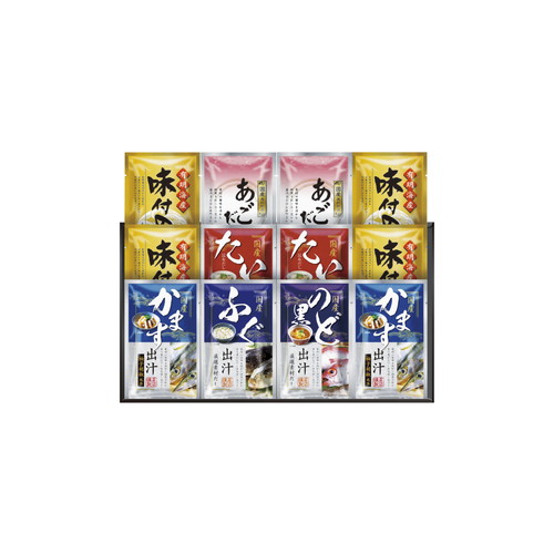 ■味付海苔(6切6枚)×4・あごだし(8g×2)×2・かますだし(8g×2)×2・たいだし(8g×2)×2・ふぐだし(8g×2)・のどぐろだし(8g×2) 【小麦・えび・かに】