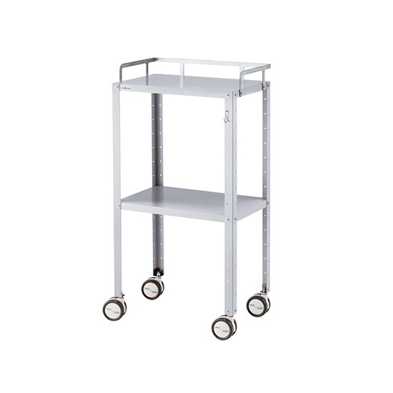 ●天板には落下防止の三方手摺が付いています。●人気の4色からお選びいただけます。●2ヶの小物掛け用フックが付いています。●追加棚板で更に拡張性を高めました。●付属のドライバーで、容易に組み立てが可能です。●段数:2段●幅×奥行×高さ(mm)※:453×302×897 ※手摺含む●重量(kg):約5.5●色:シルバー(塗装無)●材質:ステンレス(SUS430)(アクリル焼付塗装)●有効作業面寸法:447×297mm●キャスター:Φ75mmウレタン製(ストッパー無し)●棚間隔:約50mmピッチで調節可能●耐荷重:約20kg/段●組み立て式(要工具)●タグ:院内運搬機器
