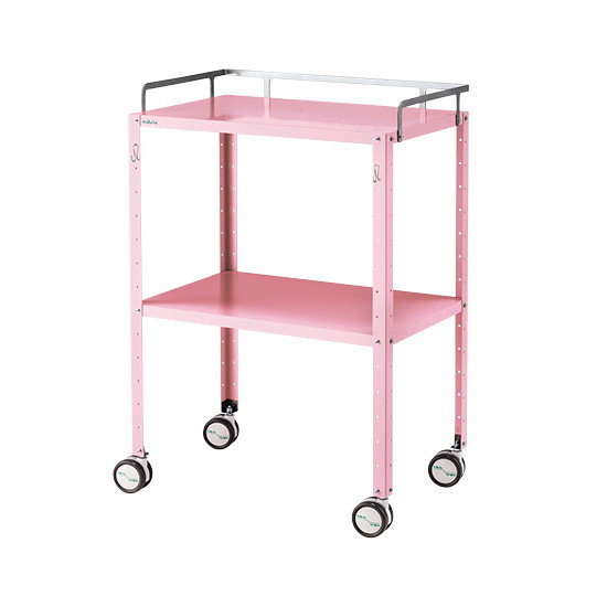 ●天板には落下防止の三方手摺が付いています。●人気の4色からお選びいただけます。●2ヶの小物掛け用フックが付いています。●追加棚板で更に拡張性を高めました。●付属のドライバーで、容易に組み立てが可能です。●段数:2段●幅×奥行×高さ(mm)※:603×402×897 ※手摺含む●重量(kg):約7.2●色:ピンク●材質:ステンレス(SUS430)(アクリル焼付塗装)●有効作業面寸法:597×397mm●キャスター:Φ75mmウレタン製(ストッパー無し)●棚間隔:約50mmピッチで調節可能●耐荷重:約20kg/段●組み立て式(要工具)●タグ:院内運搬機器